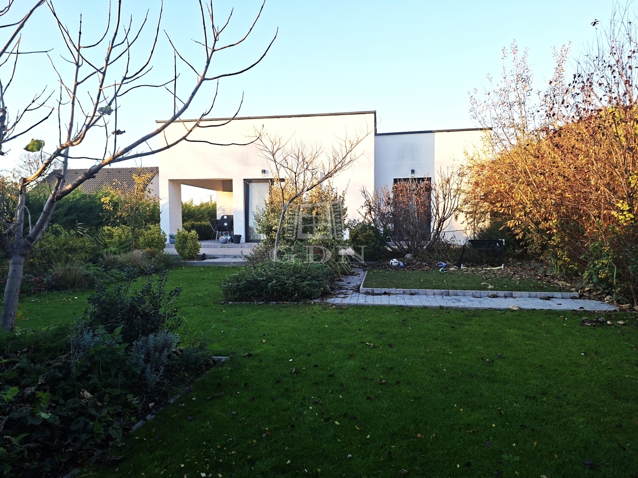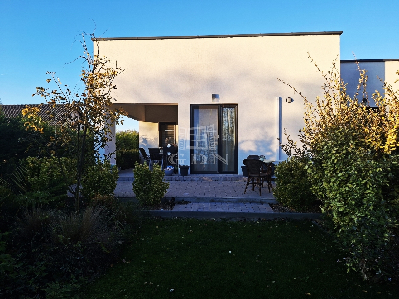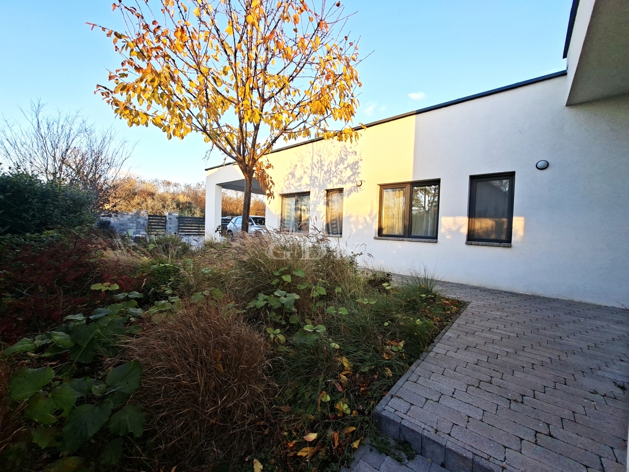 Balatonfűzfő kedvelt Fűzfőfürdő városrészében, a Balatontól mindössze 1500 méterre, Veszprémtől 15 km-re, az M7-es autópályától pedig kényelmes, 20 perces autóútra található ez a modern technológiával épült, lapostetős családi ház.