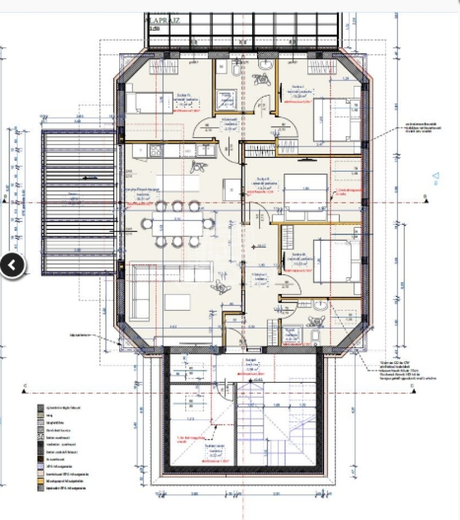 - A bruttó 140 m² alapterületen praktikus elrendezésű, világos, élhető terek kerültek kialakításra: 4 szobával, tágas amerikai konyhás nappalival, fürdőszobával, WC-vel, előtérrel.