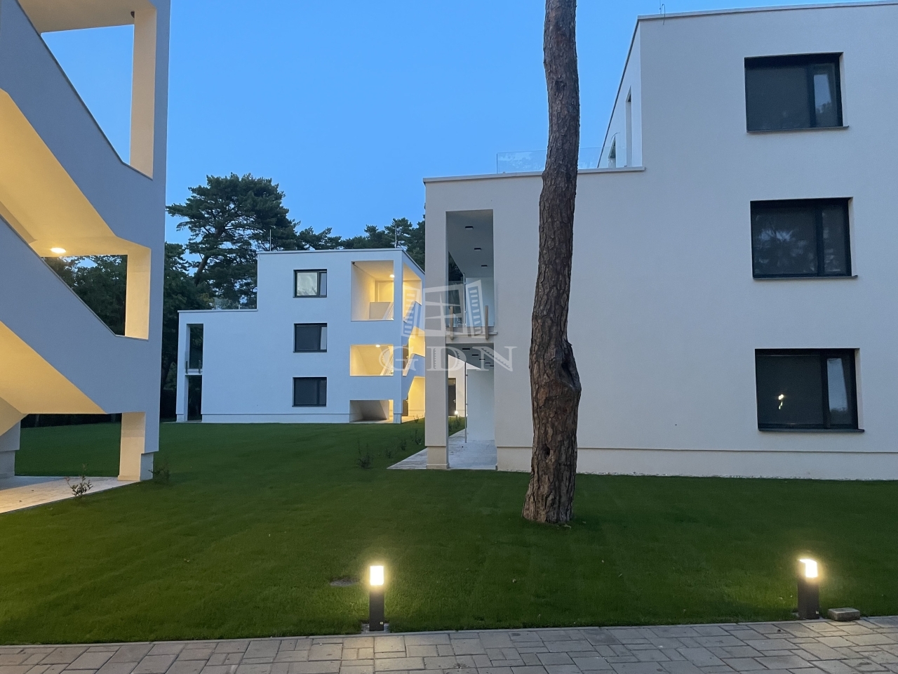 A beruházás a vasút és a vízpart közötti területen helyezkedik el, a Balatontól 80 méterre, csendes, öreg fenyőfákkal határolt telken.