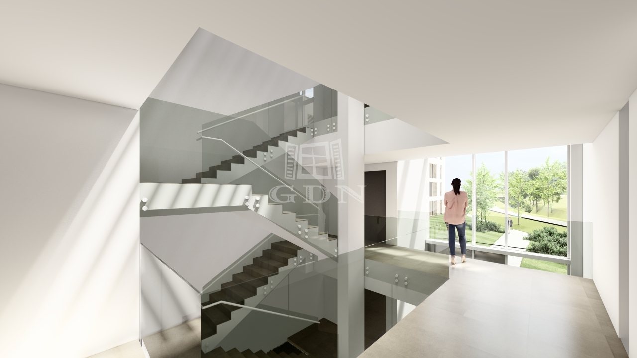 konyha, 3 hálószoba, nappali, gardróbszoba, 2 fürdőszoba, valamint vendég WC is található. A kert kapcsolatos földszinti lakás zöldfelülete megadja a kertesház hangulatát, ahol grillezhet, napozhat vagy akár egy jakuzzit is telepíthet. Az ingatlanhoz mélygarázsok és tárolok is megvásárolhatóak.