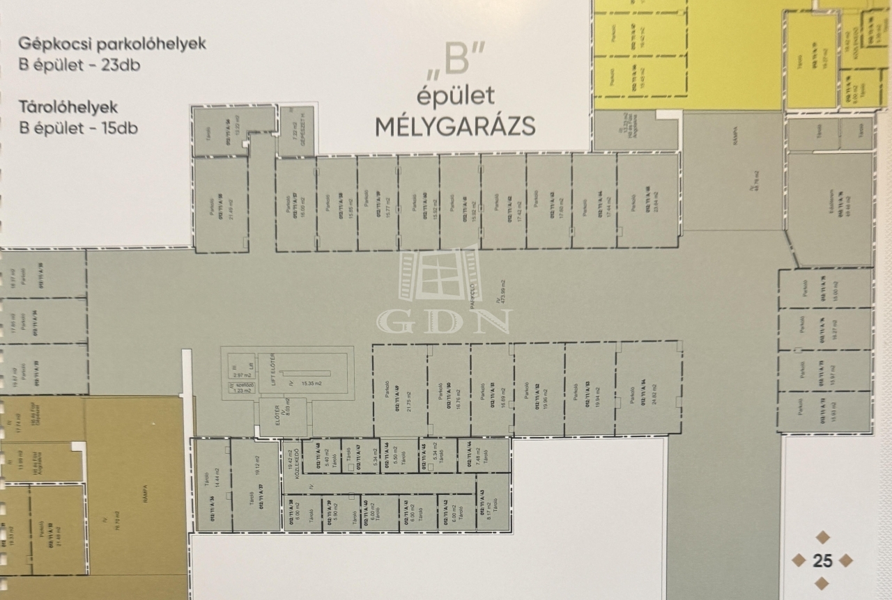 - A mélygarázs és az épület szintjei közti közlekedést 8 személyes látványliftek fogják segíteni