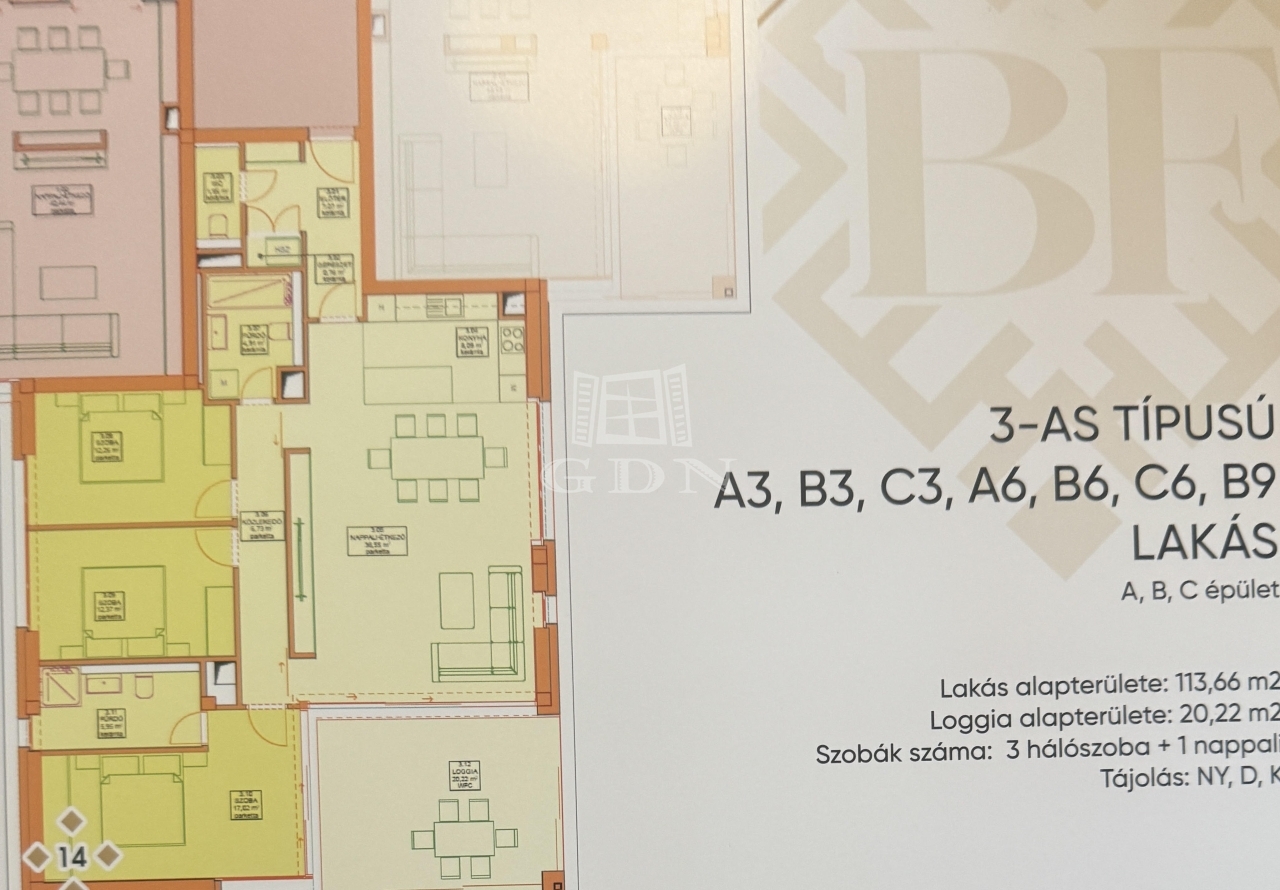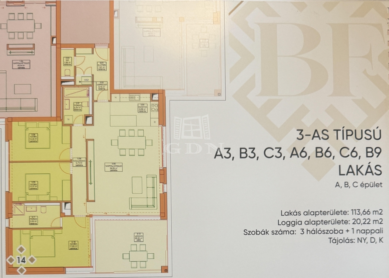 tartozik, 2 loggia amelyek alapterülete 20,22 négyzetméter. A 113,66 négyzetméteren amerikai
