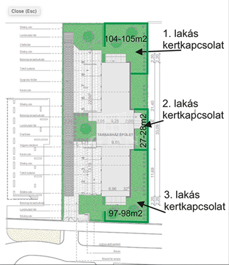 A lakások terasszal, kertkapcsolattal, napozó terasszal, autó beállóval + autótöltési lehetőséggel, tárolóval épülnek.